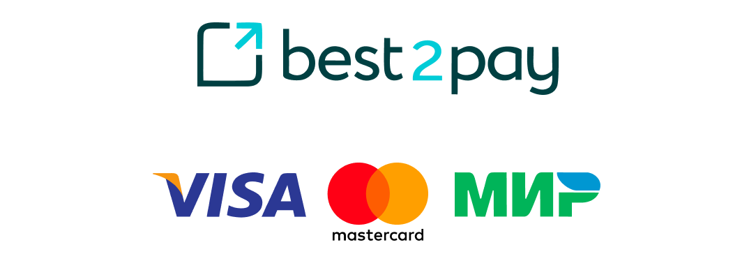 Оплатить заказ можно с помощью банковских карт платёжных систем Visa, MasterCard, МИР. При оплате банковской картой безопасность платежей гарантирует процессинговый центр Best2Pay.